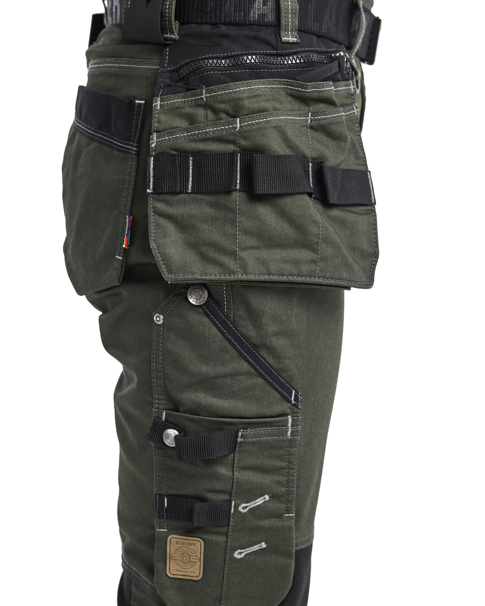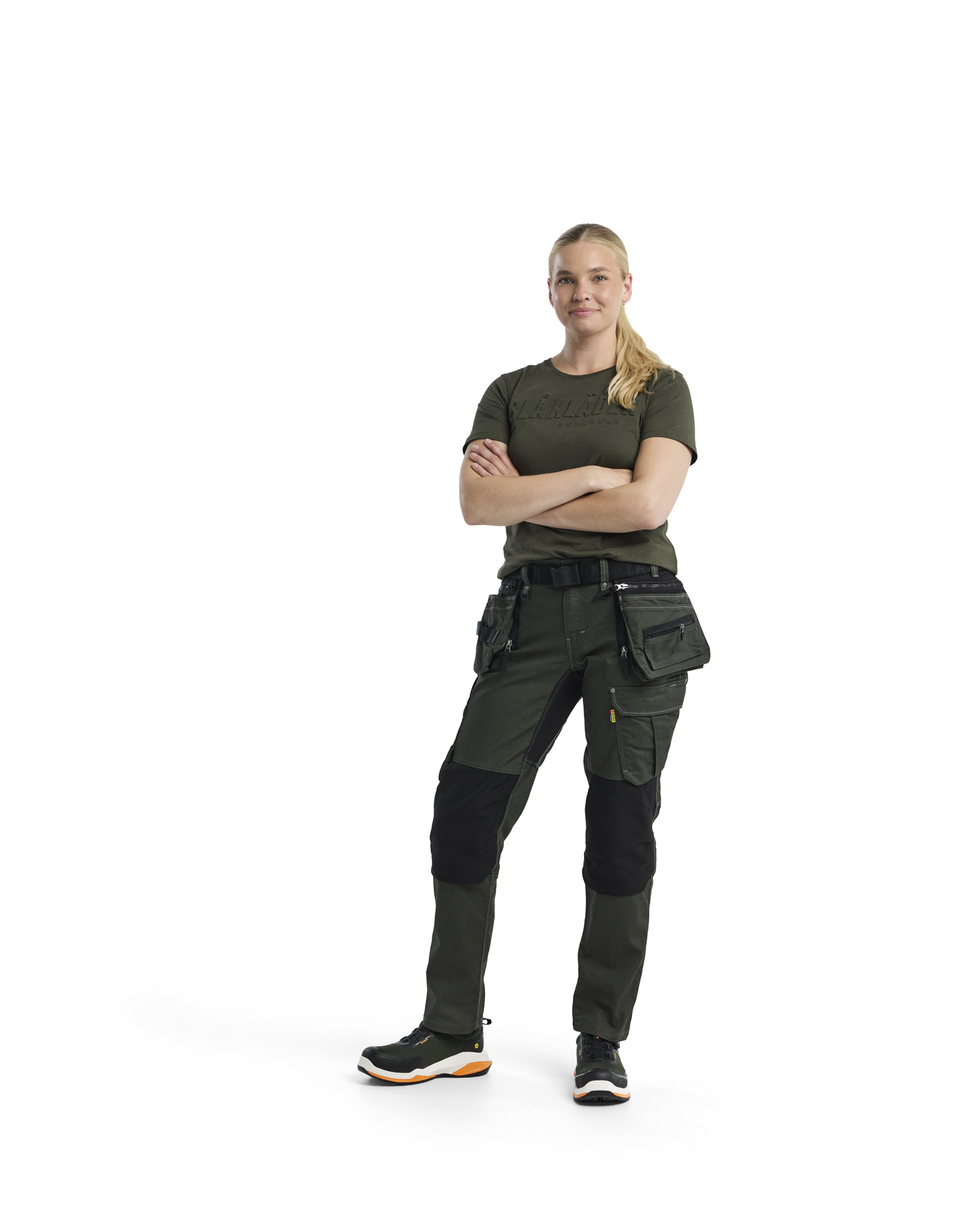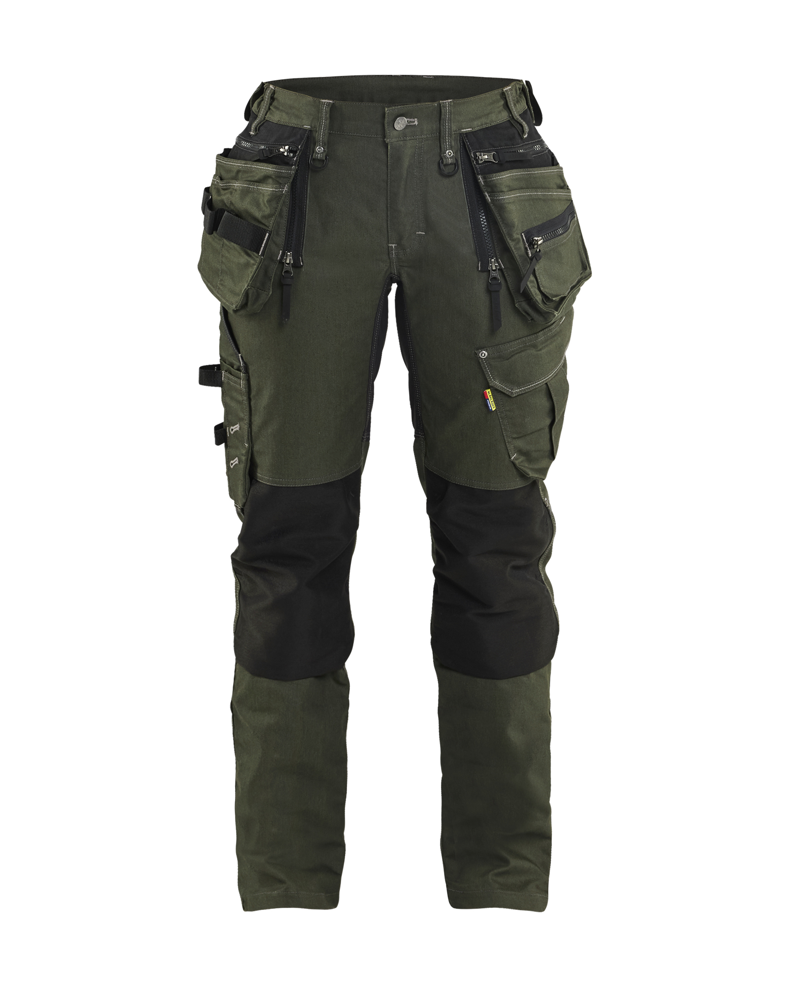 Robuste Handwerker Hose mit Damenschnitt aus Cordura® Denim Stretch Material und Stretch Einsätzen im Schritt für optimale Bewegungsfreiheit. Für die optimale Passform hat die Hose einen elastischen Bund und konisch geschnittene Beine. Von unten zu füllende Kniepolstertaschen aus CORDURA® Stretch Material für maximalen Komfort auch in kniender Position.