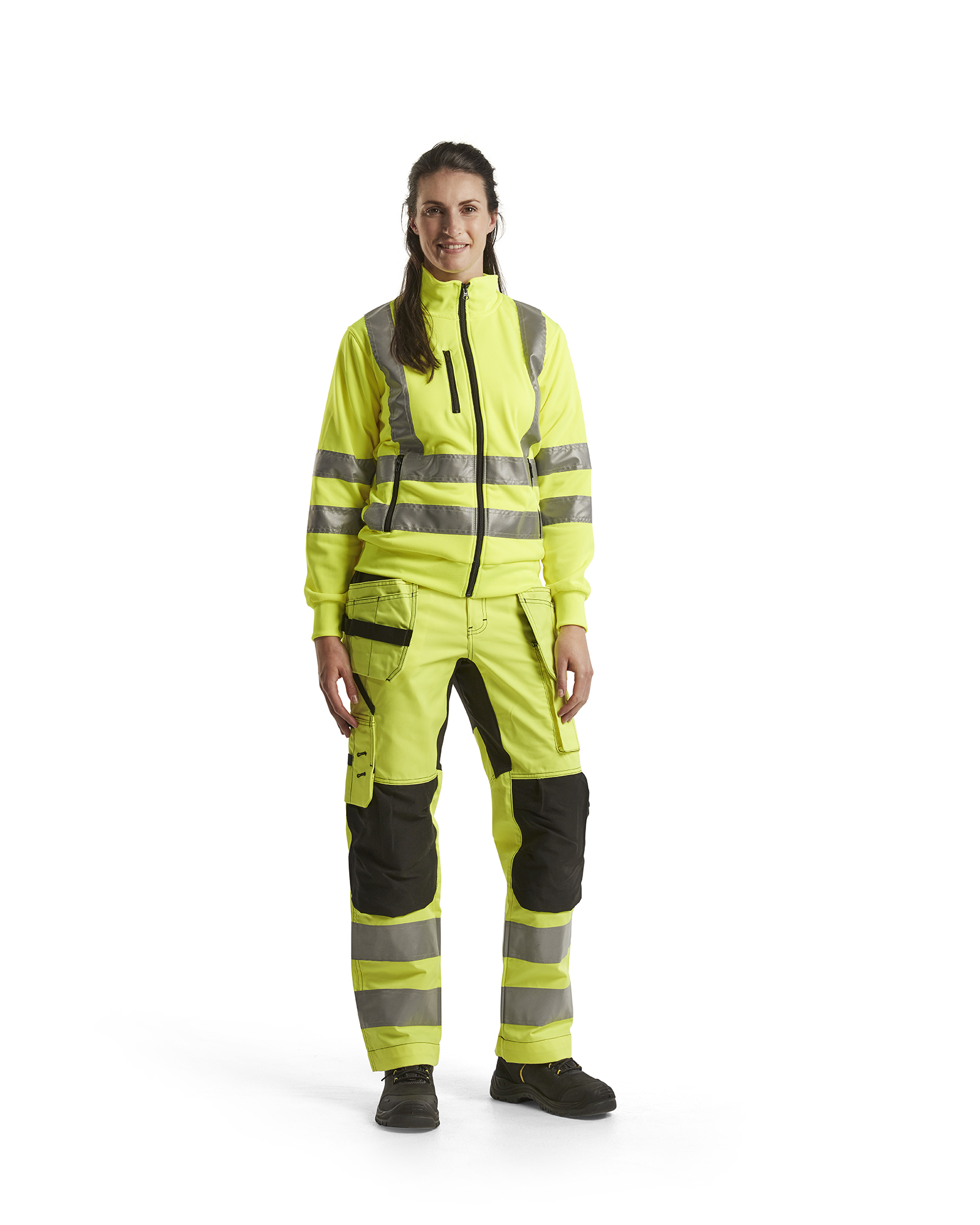 Mit diesem High Vis Sweatshirt im Damenschnitt und Reflexstreifen an allen Seiten sind Sie aus allen Richtungen sichtbar. Das Sweatshirt hat einen Reißverschluss, zwei Taschen vorne und eine Brusttasche. Entwickelt für maximalen Komfort bei der Arbeit und zertifiziert nach EN ISO 20471, XS-M Klasse 2, L-> Klasse 3. Hochsichtbare Schutzkleidung.