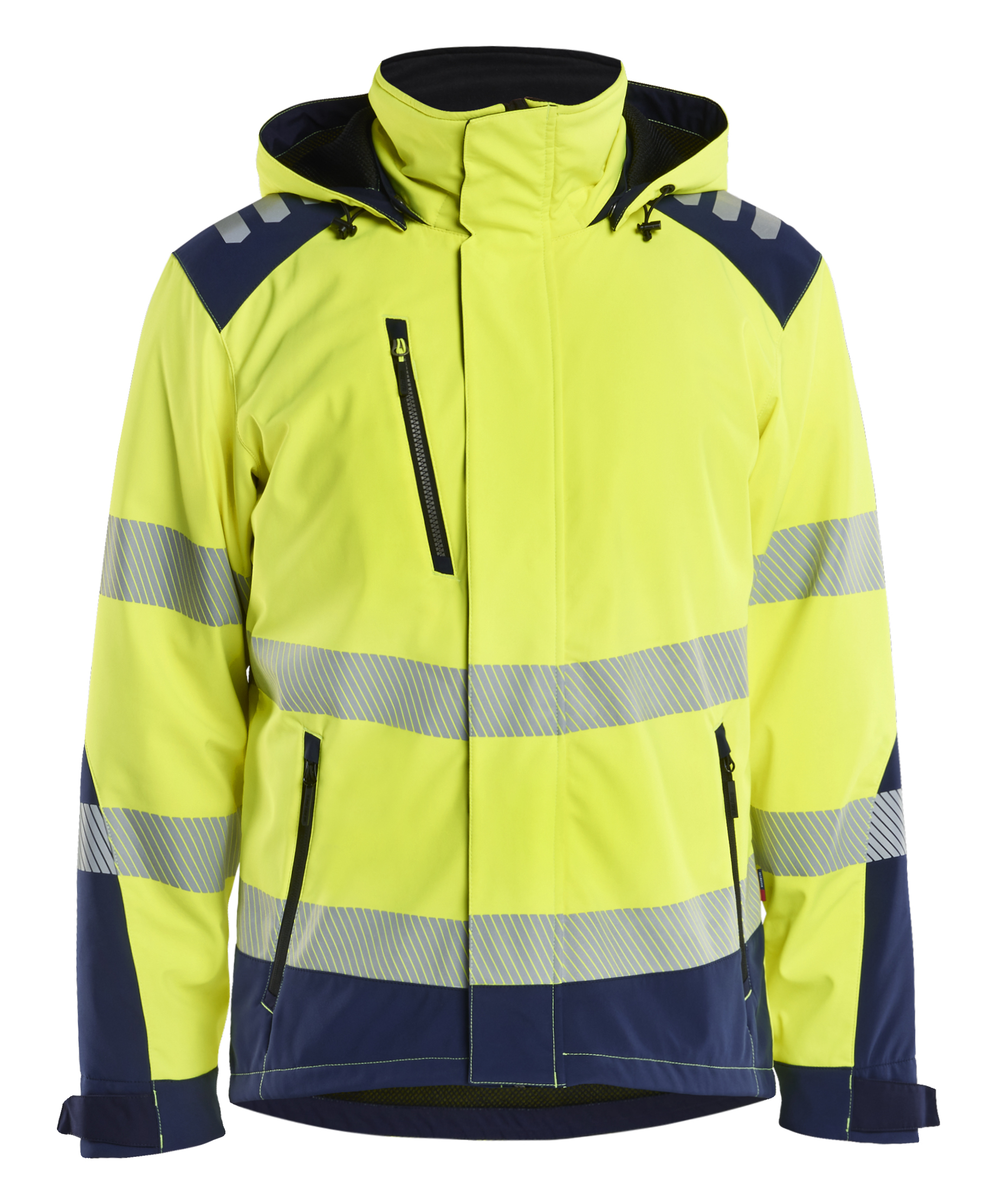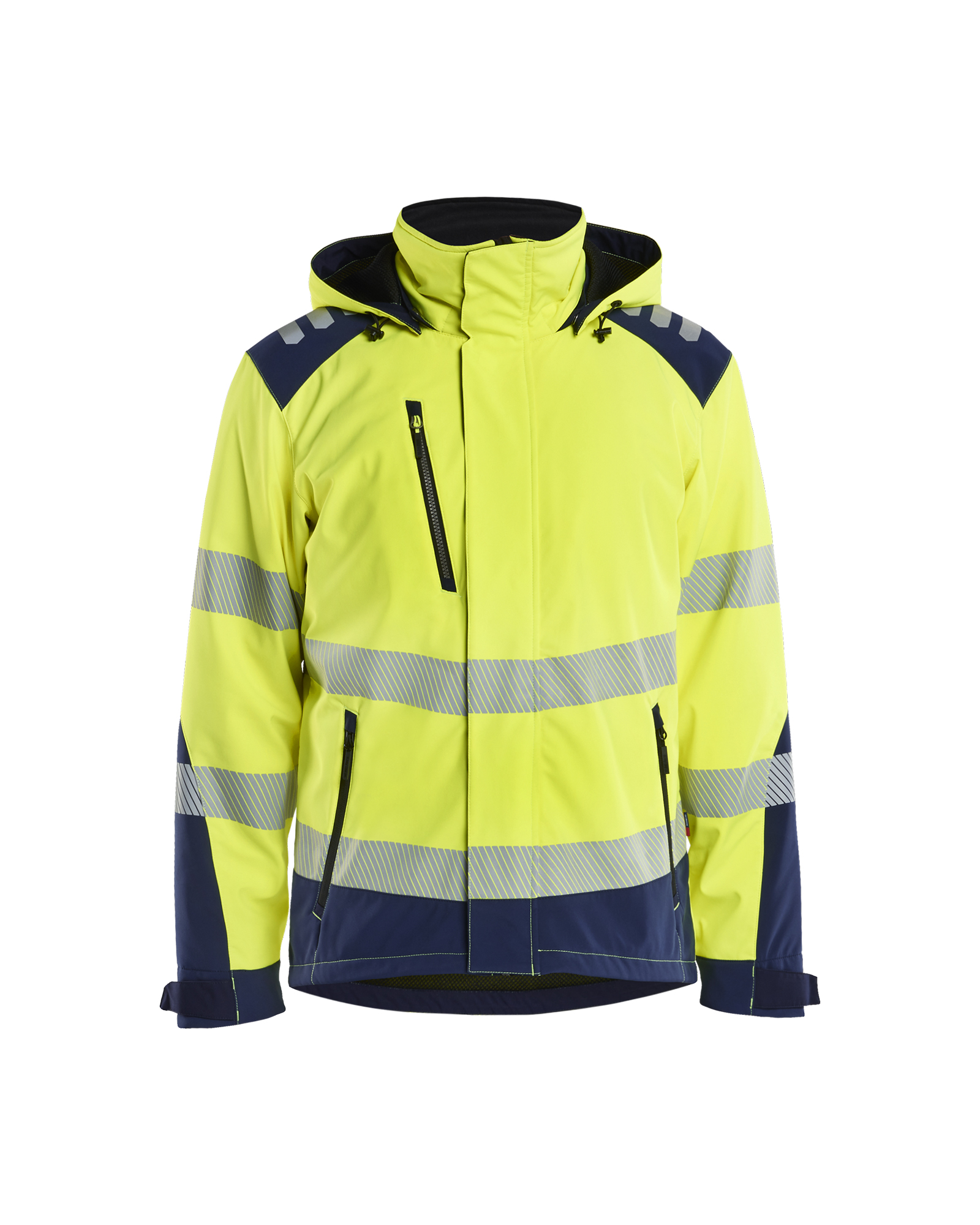 Leicht gefütterte Softshell Winterjacke aus einem Material, das sie extrem weich, geschmeidig und bequem macht. Die Jacke ist zweifarbig und bietet optimale Sichtbarkeit und Sicherheit, wenn sie am meisten gebraucht wird. Das Design dieser High Vis Jacke bietet sowohl das leichte, stretchige Tragegefühl als auch die Strapazierfähigkeit einer guten Arbeitskleidung. Das Material ist wasser- und winddicht und hat eine ausgezeichnete Atmungsaktivität. Eine Lasche über dem Reißverschluss erhöht die Winddichtigkeit, und die Jacke wird mit einer abnehmbaren Kapuze geliefert. Auch im Damenschnitt 4401 erhältlich.