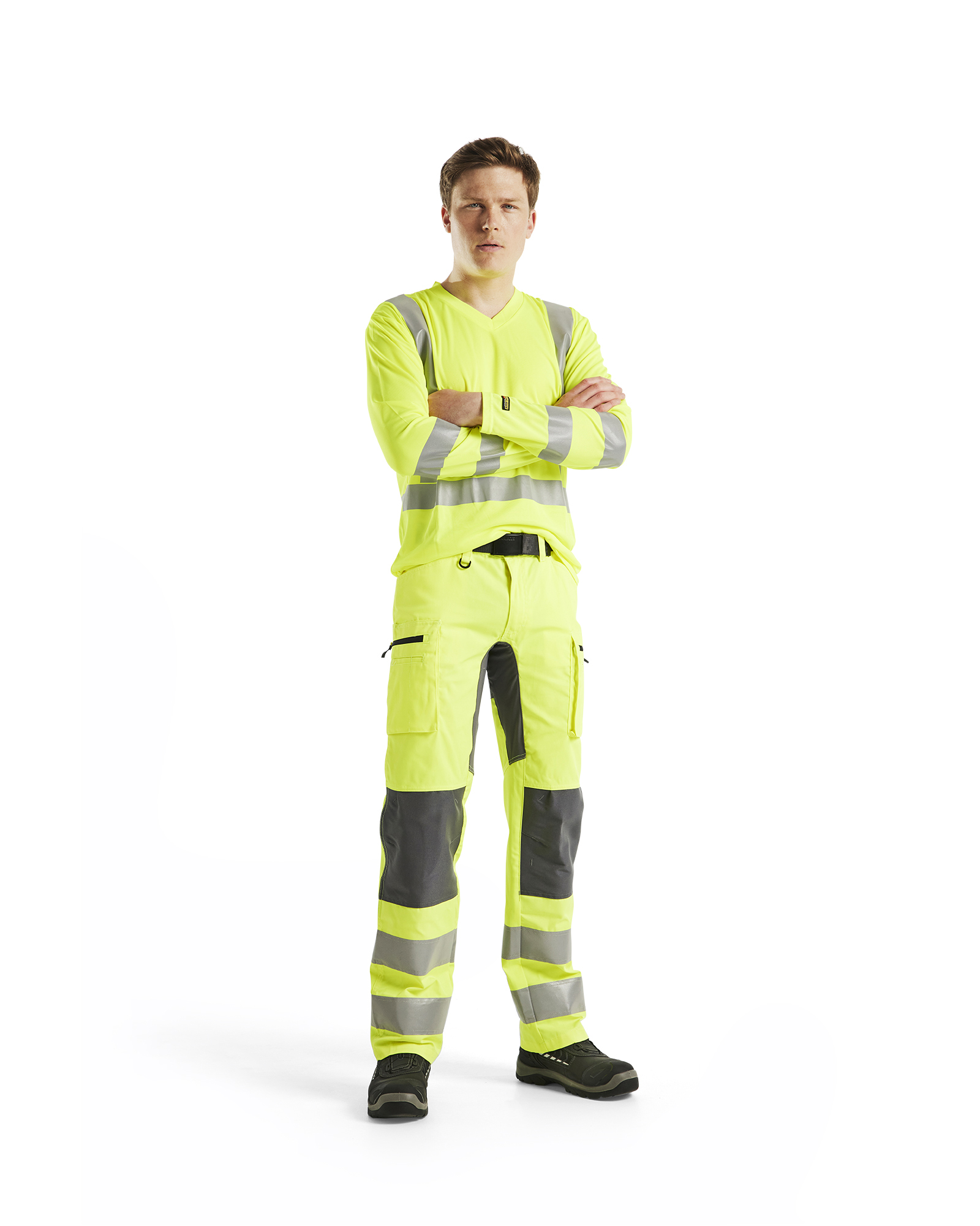 Langärmliges Shirt mit UV-Schutz und V-Auschnitt. Atmungsaktives und leichtes Strickmaterial mit Struktur. Feuchtigkeitsregulierende Eigenschaften für ein angenehmes und luftiges Gefühl am Körper. Zertifiziert nach EN 471/EN ISO 20471 Klasse 2.