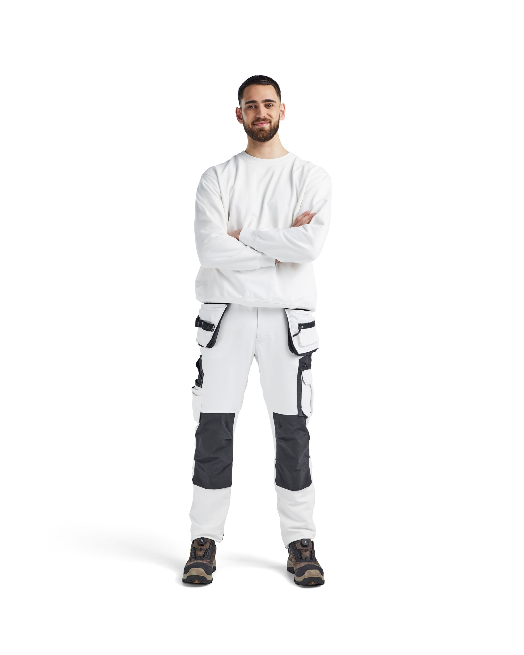 Diese flexible und bequeme Malerhose mit eng geschnittenen Beinen bietet Bewegungsfreiheit und ist extrem weich. Diese Hose ist so entwickelt, dass sie auch harten Arbeiten standhält, ohne Kompromisse bei Komfort und Passform einzugehen. Das Material ist ein glatter 4-Wege-Strech Stoff, der in alle Richtungen stark und dehnbar ist. Die Hose hat fortschrittliche Details und speziell gestaltete Taschen für Pinsel, Spachtel und Malmesser sowie Nageltaschen. Die Kniepolstertasche ist außen mit CORDURA® Stretch und Innen mit Stretch für mehr Bewegungsfreiheit verstärkt. Weiches, elastisches Netzgewebe an der Rückseite des Knies sorgt für eine gute Belüftung. Der Beinsaum mit Verstärkung auf der Rückseite bietet einen effektiven Schutz vor Verschleiß.